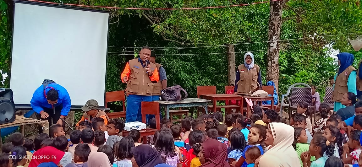 Dalam kegiatan sosialisasi tersebut, Rombongan BNPB yang juga terdiri dari komunitas Artis Pelawak NKRI, Relawan Yayasan Lapan Maluku melakukan Layanan Psikososial dengan menyasar anak-anak lewat aksi permainan dan hiburan.