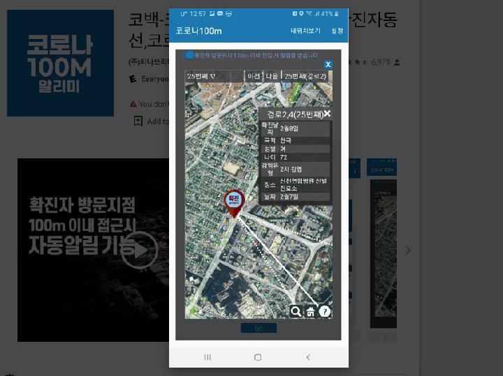 Aplikasi diberi nama 100m diluncurkan 11 Februari lalu, dan menurut CNN Business telah diunggah leih dari 1 juta kali. Aplikasi ini mengumpulkan data dari pejabat publik termasuk dari Pusat Pengawasan Penyakit Korea untuk menunjukkan data pasien yang didiagnosa terinfeksi virus Corona lengkap dengan data pribadi seperti kewarganegaraannya, usia, jenis kelamin, dan tempat mereka berkunjung.