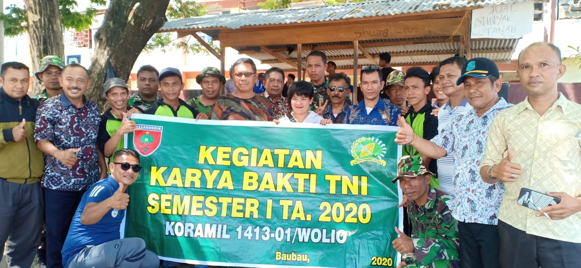 SABUROmedia, Baubau – Kegiatan karya Bakti TNI untuk Semester 1 Tahun 2020 digelar Koramil 1413.01 Wolio. Kegiataan ini biasa dilakukan pertriwulan untuk mendekatkan TNI dengan Rakyat.