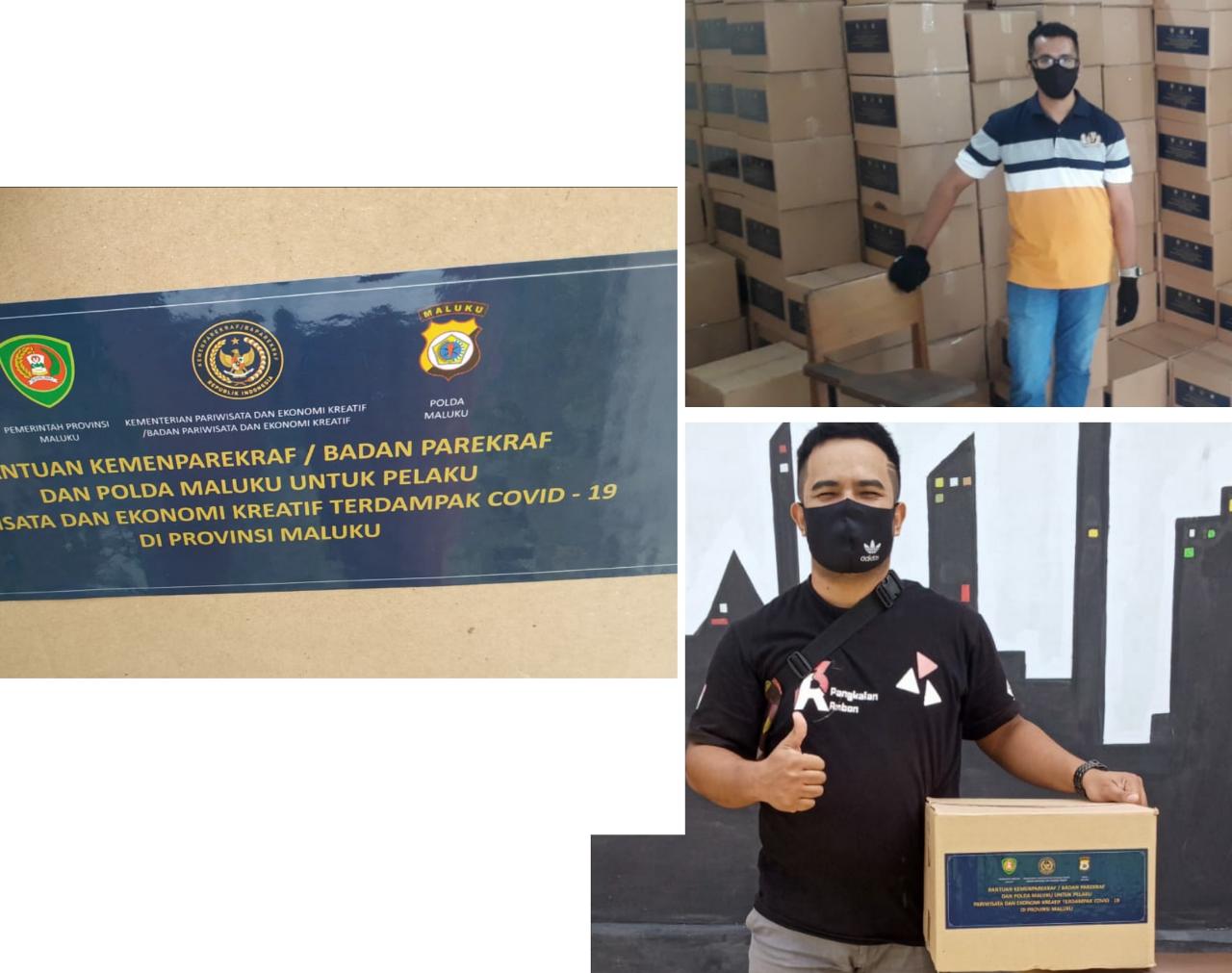 Kementerian Parawisata Melalui dinas Parawisata Provinsi Provinsi Maluku menyalurkan bantuan BALASA sebanyak 3.347 Sembako yang berisi Beras dan Ikan Abon untuk warga di 11 Kabupatan/ Kota di Provinsi Maluku.
