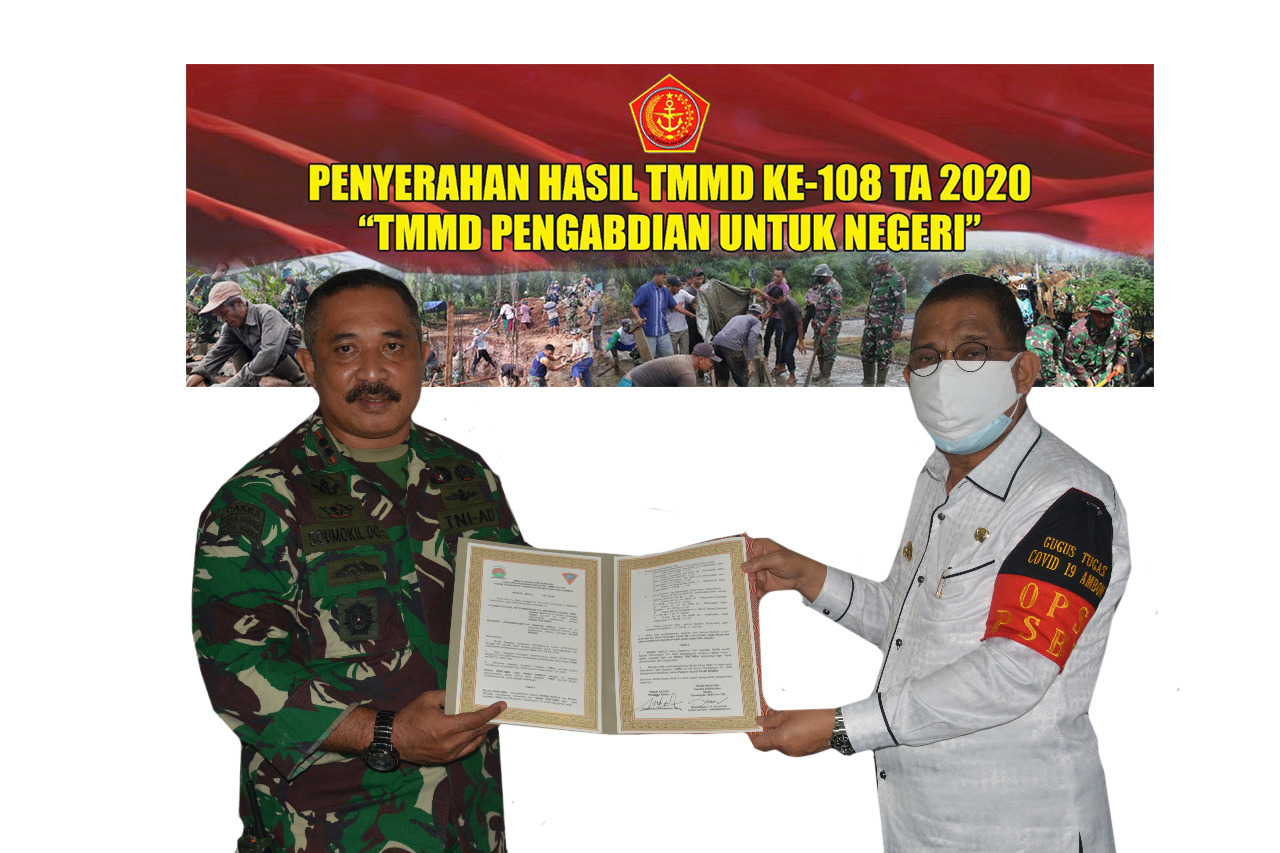Hal tersebut ditandai dengan penandatanganan dan penyerahan naskah serah terima pekerjaan TMMD Regular Ke-108 Kodim 1504/Ambon dari Dansatgas TMMD, Letkol Inf Dominggus C.A Soumokil kepada Walikota Ambon. Richard Louhenapessy, SH. di Aula Makodim 1504/Ambon Kec. Sirimau kota. Ambon, Rabu (29/7/2020).