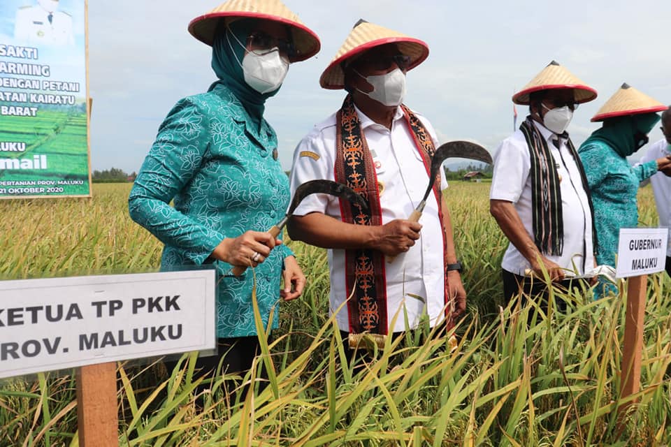 Dalam kunjungan tersebut, Gubernur juga melakukan panen perdana padi varietas trisakti yang dikembangkan di Desa Waimital dan Waihatu, Kecamatan, Kairatu Kabupaten SBB, Rabu (21/10/20).