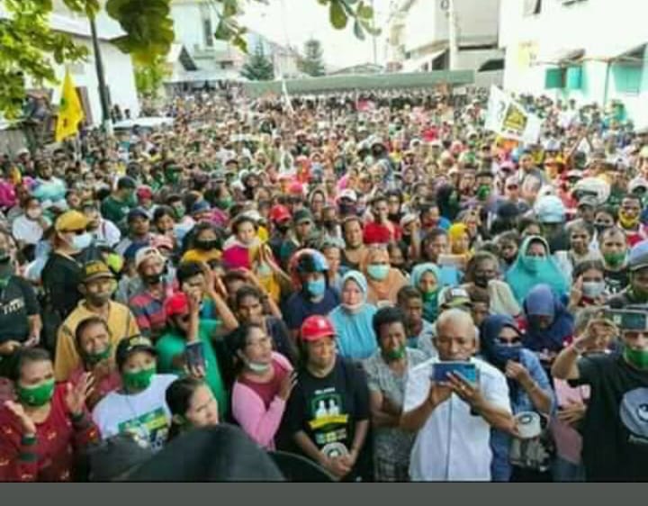 Timotius Kaidel Dalam orasi terakhirnya menyampaikan banyak terima kasih kepada seluruh masyarakat yang sampai hari terakhir  kampanye tetap mendukung kami paslon 02 sehingga dan semoga 62% keunggulan kami berdasarkan hasil survei terus di pertahankan sampai tanggal. 9 desember hari h pencoblosan.