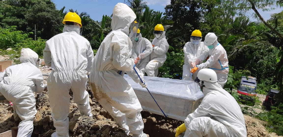 Prosesi pemakaman dilaksanakan pada pukul 12.30 WIT, disaksikan keluarga. Tim relawan yang bertugas adalah Tim PMI Provinsi Maluku.