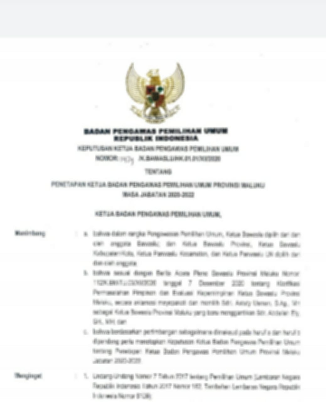 Namun saburomedia.com mendapatkan salinannya dari sumber terpercaya media ini yang tidak mau dipublikasikan, dimana SK Bawaslu RI yang ditandatangani oleh Ketua Bawaslu RI Abhan, dengan No. 0429/K.BAWASLU/HK.01.01/XII/2020 tentang Penetapan Ketua Bawaslu Maluku Periode 2020 – 2022 tertanggal 11 Desember 2020.