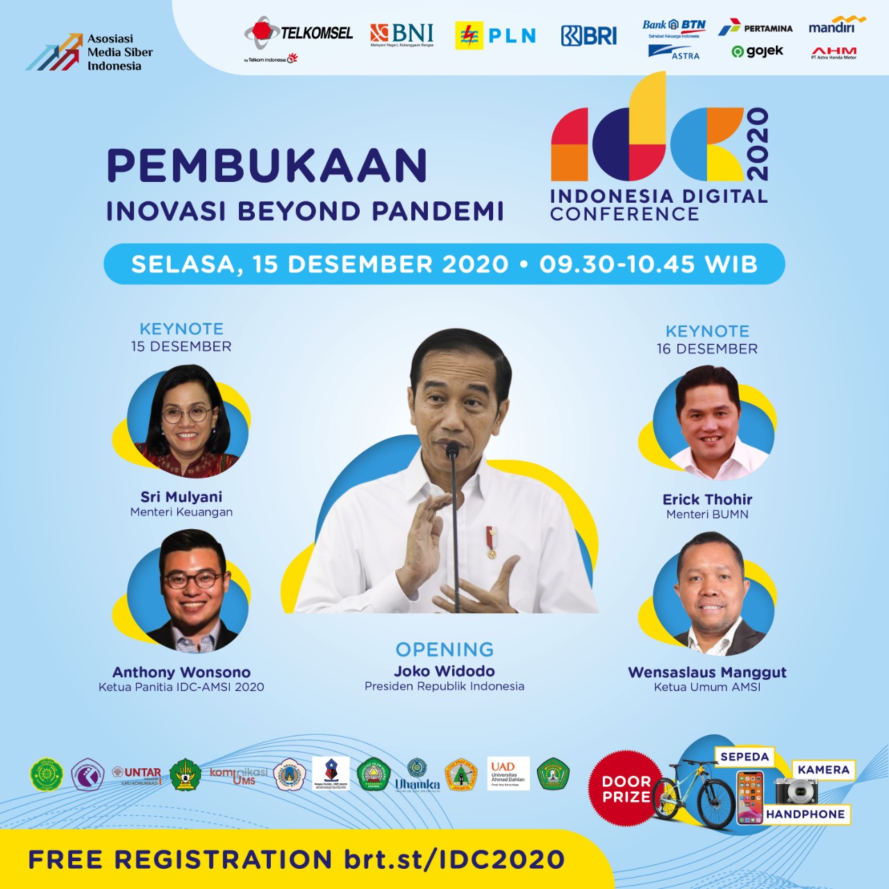 SABUROmedia, Jakarta – Sebanyak 3.500 peserta telah mendaftar untuk mengikuti Indonesia Digital Conference (IDC) 2020 secara virtual. Kegiatan yang diselenggarakan Asosiasi Media Siber Indonesia (AMSI) ini akan berlangsung selama dua hari, Selasa-Rabu, 15-16 Desember. Presiden Joko Widodo dijadwalkan akan membuka konferensi ini.