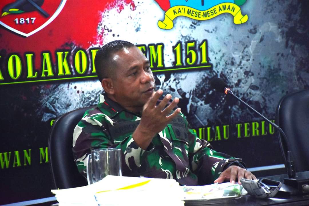 SABUROmedia, Ambon – Komandan Korem 151/Binaiya Brigjen TNI Arnold A.P. Ritiauw selaku Komandan Komando Pelaksana Operasi (Dankolakops) Korem 151/Binaiya memimpin langsung Rapat Koordinasi dalam rangka persiapan Serah terima Pasukan (Serpas) Satgas Pamrahwan Maluku TA.2020, bertempat di Loby Makorem 151/Binaiya, Senin (21/12/2020).