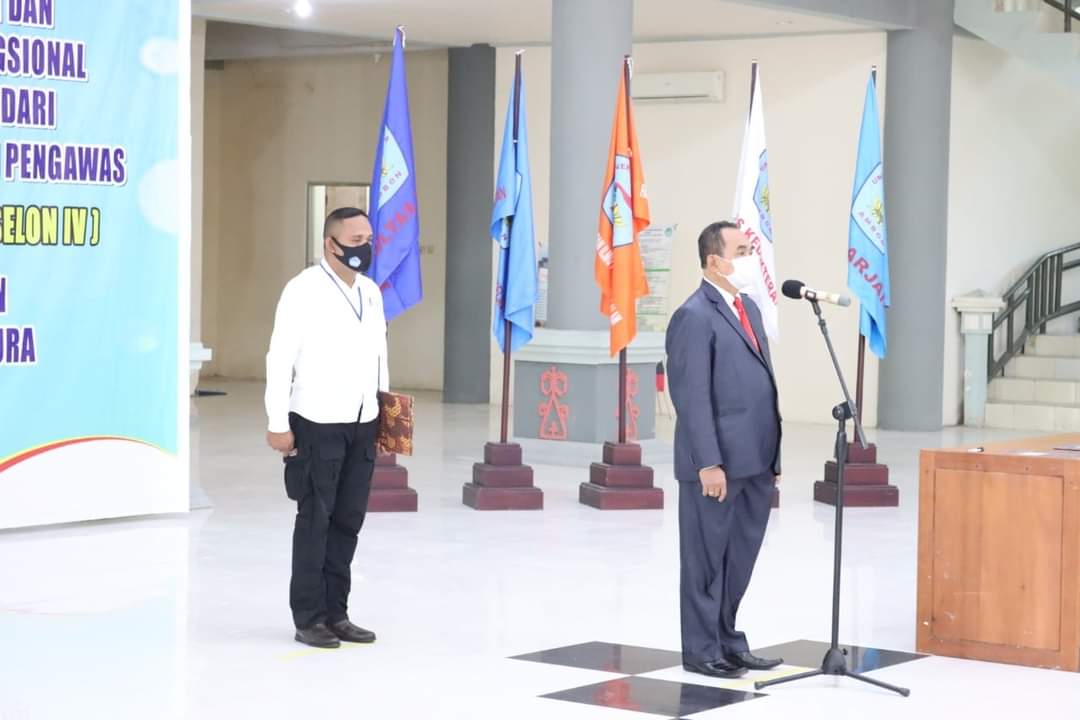 SABUROmedia, UNPATTI – Rektor Universitas Pattimura, Prof. Dr. M.J. Saptenno, SH, M.Hum resmi melantik dan mengambil sumpah 73 para pejabat yang telah dilakukan penyetaraan dari jabatan struktural Eselon III dan IV yang sebelumnya diemban ke dalam jabatan fungsional. Pelantikan dan Pengambilan Sumpah ini di lakukan berdasarkan Keputusan Menteri Pendidikan dan Kebudayaan Nomor 111301/A3/KP/2020 s.d 115123 /A3/KP/2020 dan 1114896/A3/KP/2020 Tentang Pengangkatan Melalui Penyetaraan Jabatan Administrasi Ke Dalam Jabatan Fungsional yang berlangsung di Auditorium Universitas Patimura, Senin (21/12/2020).