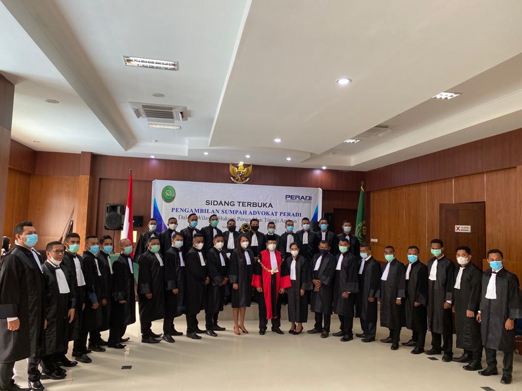 Sebelum Pelantikan, para Advokat terlebih dulu diambil sumpahnya oleh Ketua Pengadilan Tinggi Ambon, Dr. Zainuddin,S.H.,M.Hum dalam sidang terbuka Pengambilan Sumpah Advokat Peradi dalam Wilayah Hukum Pengadilan Tinggi Ambon,