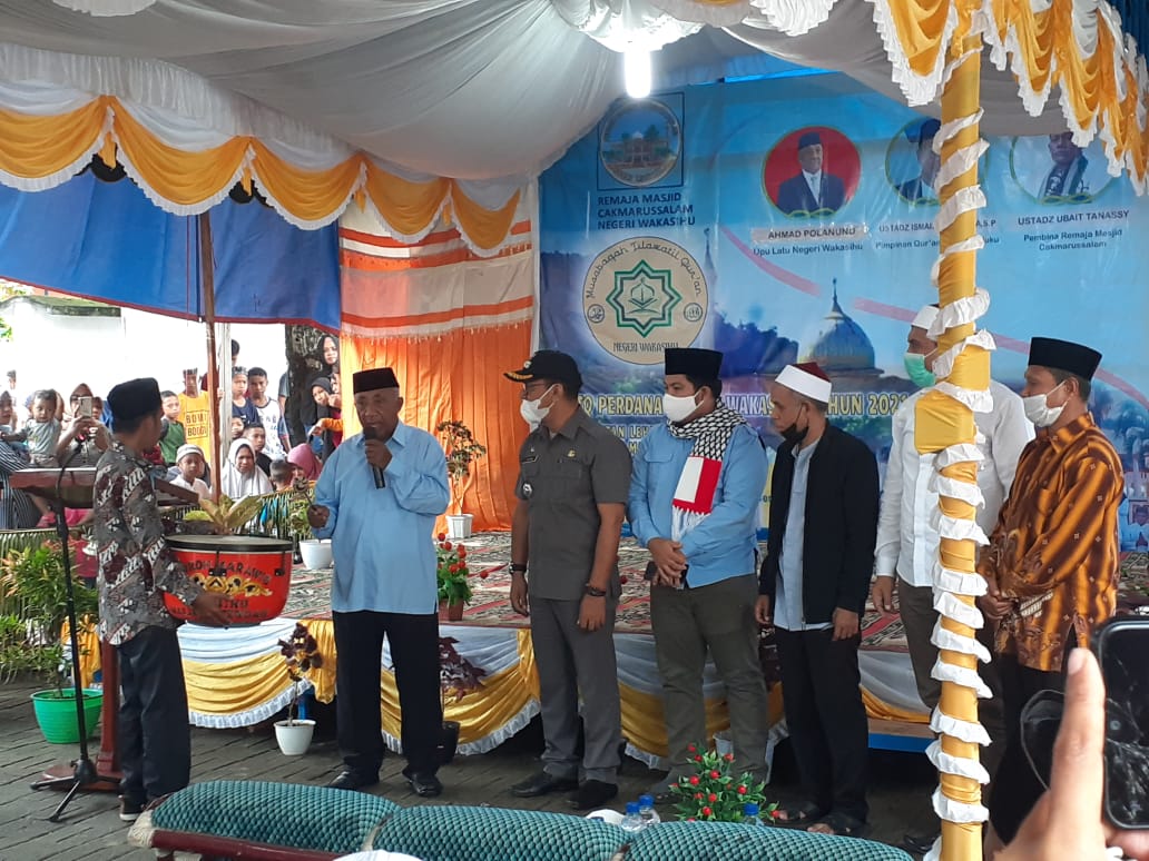 SABUROmedia, Leihitu Barat – Raja Negeri Wakasihu Kecamatan Leihitu Barat, Ahmad Polanunu resmi membuka Musabaqah Tilawatil Qur’an (MTQ) Perdana Tingkat Desa di Halaman Balai Desa Negeri Wakasihu, Sabtu pagi (15/05/2021).