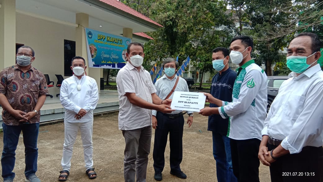 SABUROmedia, Ambon — Dewan Pimpinana Pusat Ikatan Alumni Universitas Pattimura (DPP IKAPATTI) melaksanakan Qurban di sekretariat IKAPATI yang terletak di kampus Unpatti, proses penyembelihan dan penyerahan 6 ekor hewan Qurban tersebut bekerjasama dengan Lembaga Dakwah Kampus (LDK) Al-Ikwan Unpatti, Rabu kemarin (20/07/21).