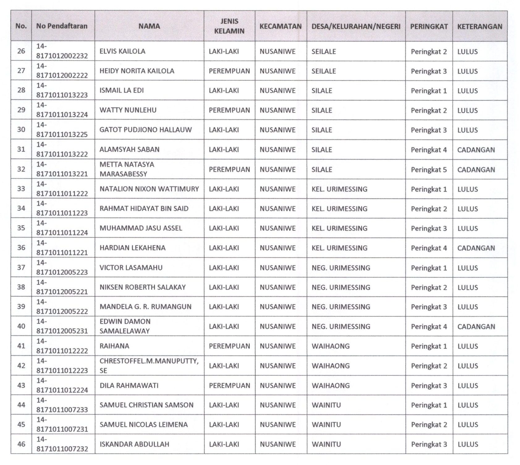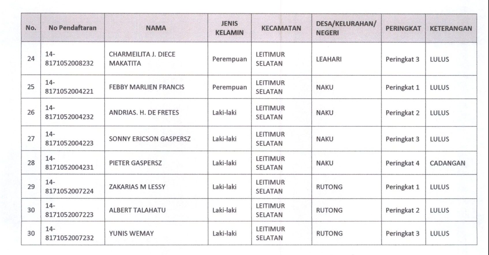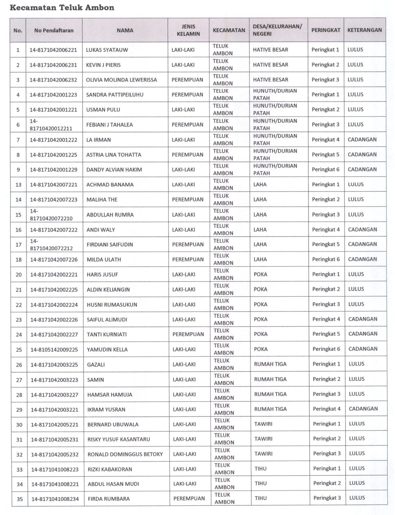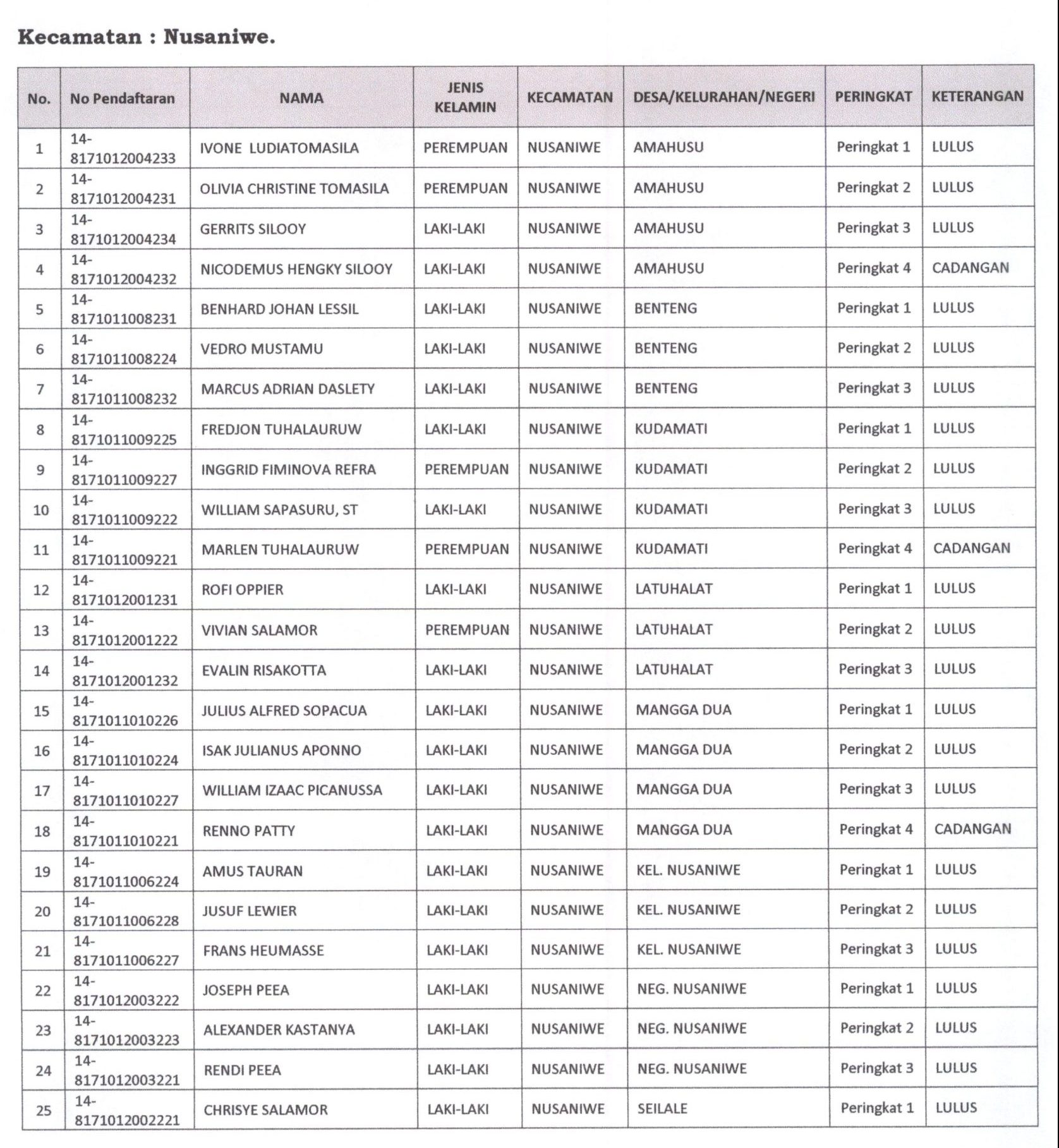 Daftar Pengumuman kelulusan PPS Pemilu 2024 Kota Ambon itu berdasarkan berita acara rapat pleno KPU Kota Ambon Nomor 67/PL.01.Pu/8171/2023 tanggal 15 Januari 2023 tentang Penetapan hasil seleksi calon anggota PPS yang ditandatangani langsung oleh Ketua KPU Kota, Muhammad Shaddek Fuad.