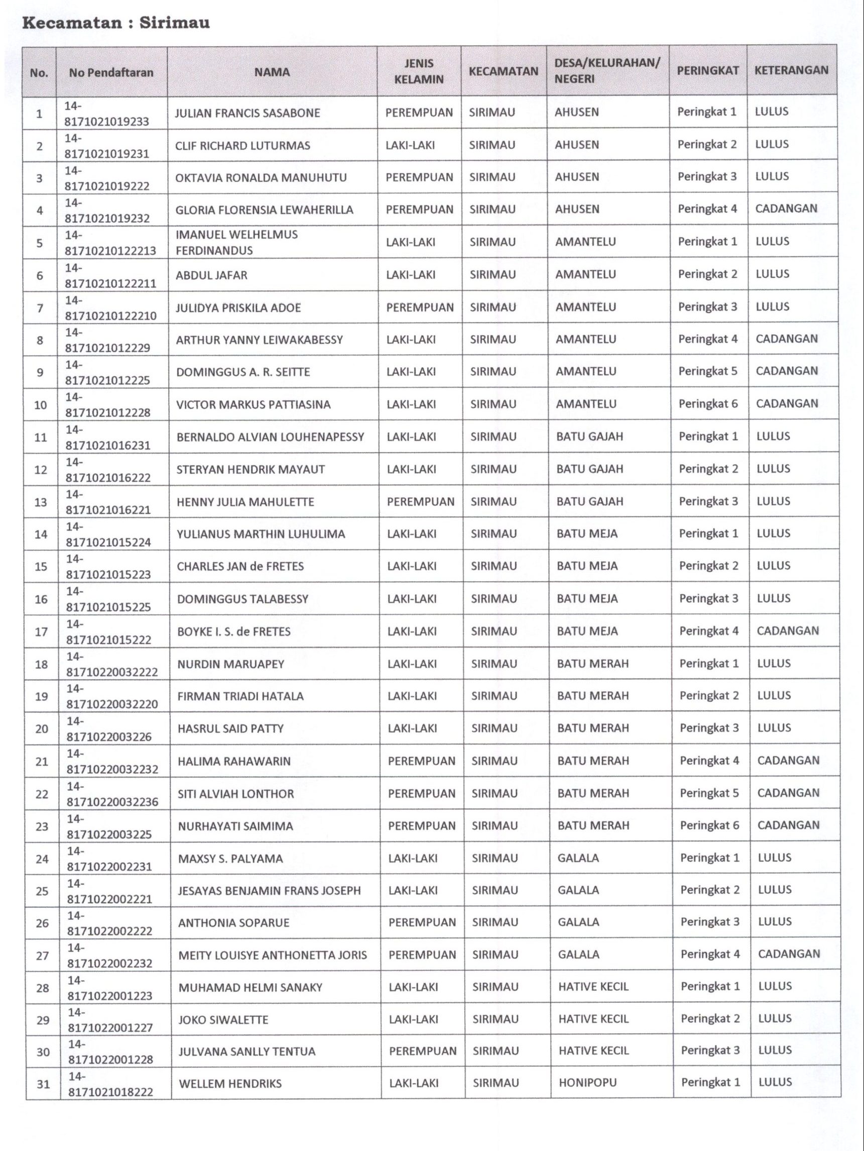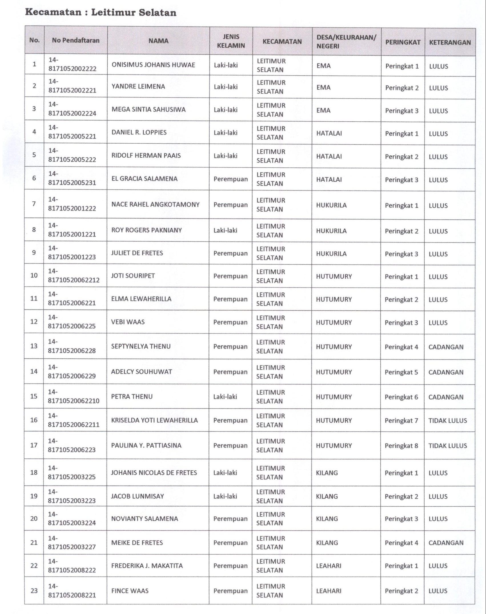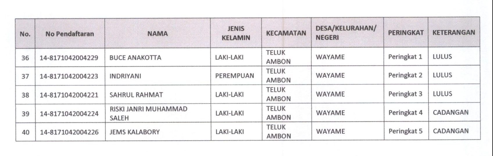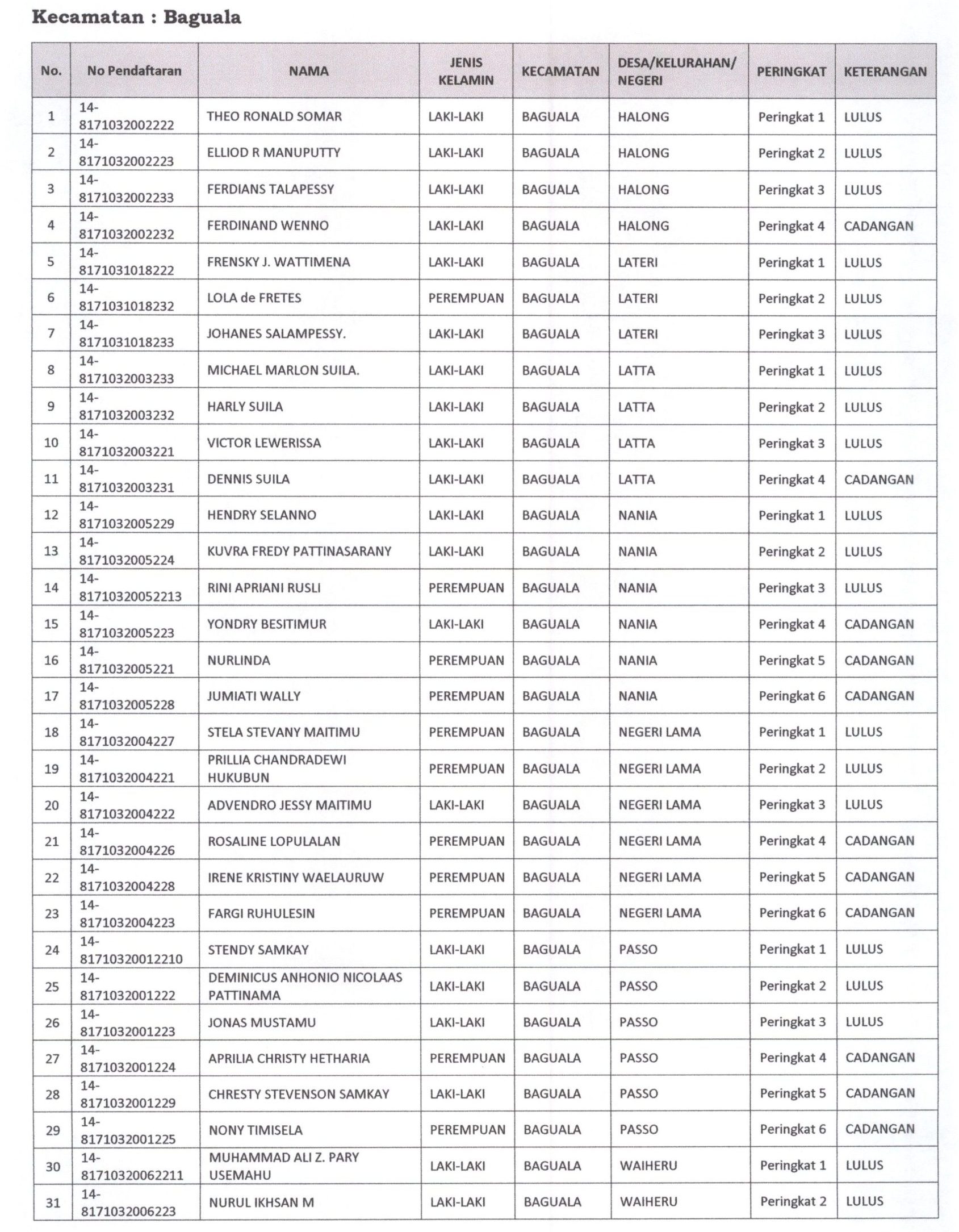 Daftar Pengumuman kelulusan PPS Pemilu 2024 Kota Ambon itu berdasarkan berita acara rapat pleno KPU Kota Ambon Nomor 67/PL.01.Pu/8171/2023 tanggal 15 Januari 2023 tentang Penetapan hasil seleksi calon anggota PPS yang ditandatangani langsung oleh Ketua KPU Kota, Muhammad Shaddek Fuad.