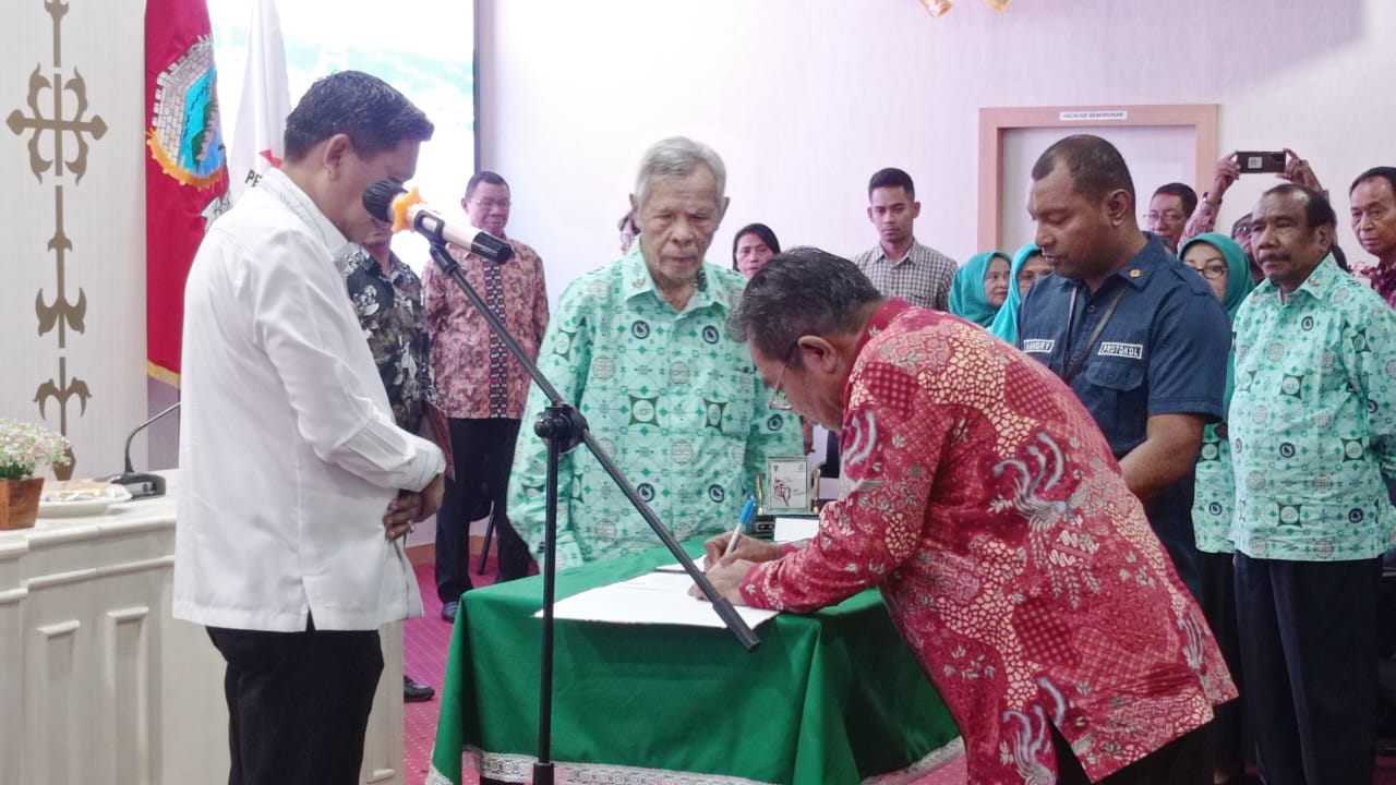 SABUROmedia, Ambon — Penjabat Walikota Ambon Bodewin M. Watimena melantik Pengurus Persekutuan Pensiunan Indonesia Cabang Kota Ambon, di Balai Kota Ambon ruangan Visingen lantai II, Jum’at (06/10/2023).