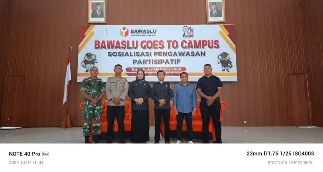 SABUROmedia, SBB — Badan Pengawas Pemilihan Umum (Bawaslu) Kabupaten Seram Bagian Barat mengadakan kegiatan ” Bawaslu Goes To Campus Pengawasan Pemilu Partisipatif ” di Stikes Maluku Husada di Ruang Auditorium Stikes Maluku Husada pada Senin, (07/10/2024).