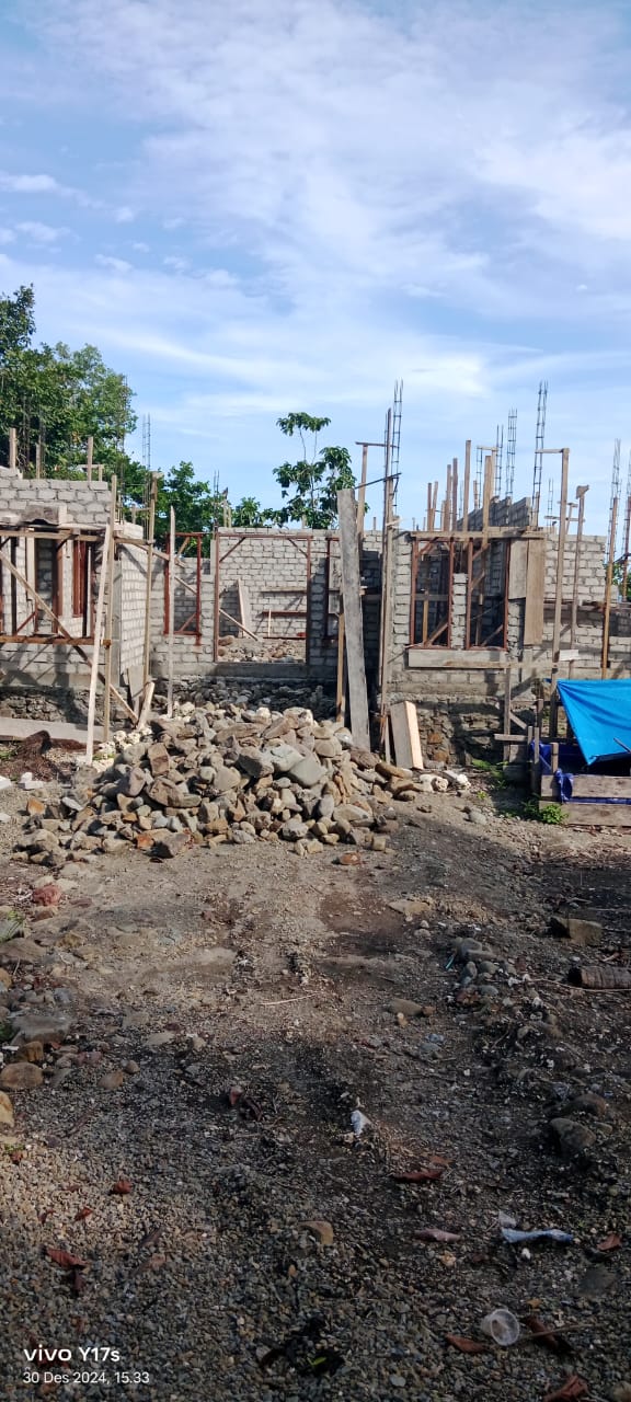 salah satu contoh bukti fisik kantor desa belum tuntas/alias tertinggal puing puing gedung yang belum diselesaikan secara permanen.