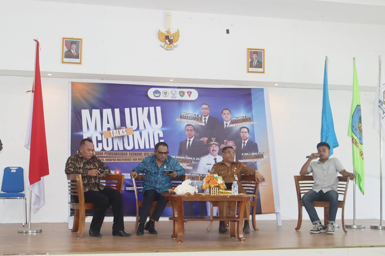 Wakil Rektor Bidang Kemahasiswaan, Hubungan Masyarakat, dan Alumni Universitas Pattimura, Dr. Nur Aida Kubangun., S.Pd., M.Pd dalam sambutannya sekaligus membuka dengan resmi kegiatan Talkshow tersebut mengatakan bahwa forum tersebut merupakan wujud komitmen bersama antara akademisi, mahasiswa, pemerintah, dan pelaku ekonomi untuk berkontribusi dalam pembangunan daerah.
