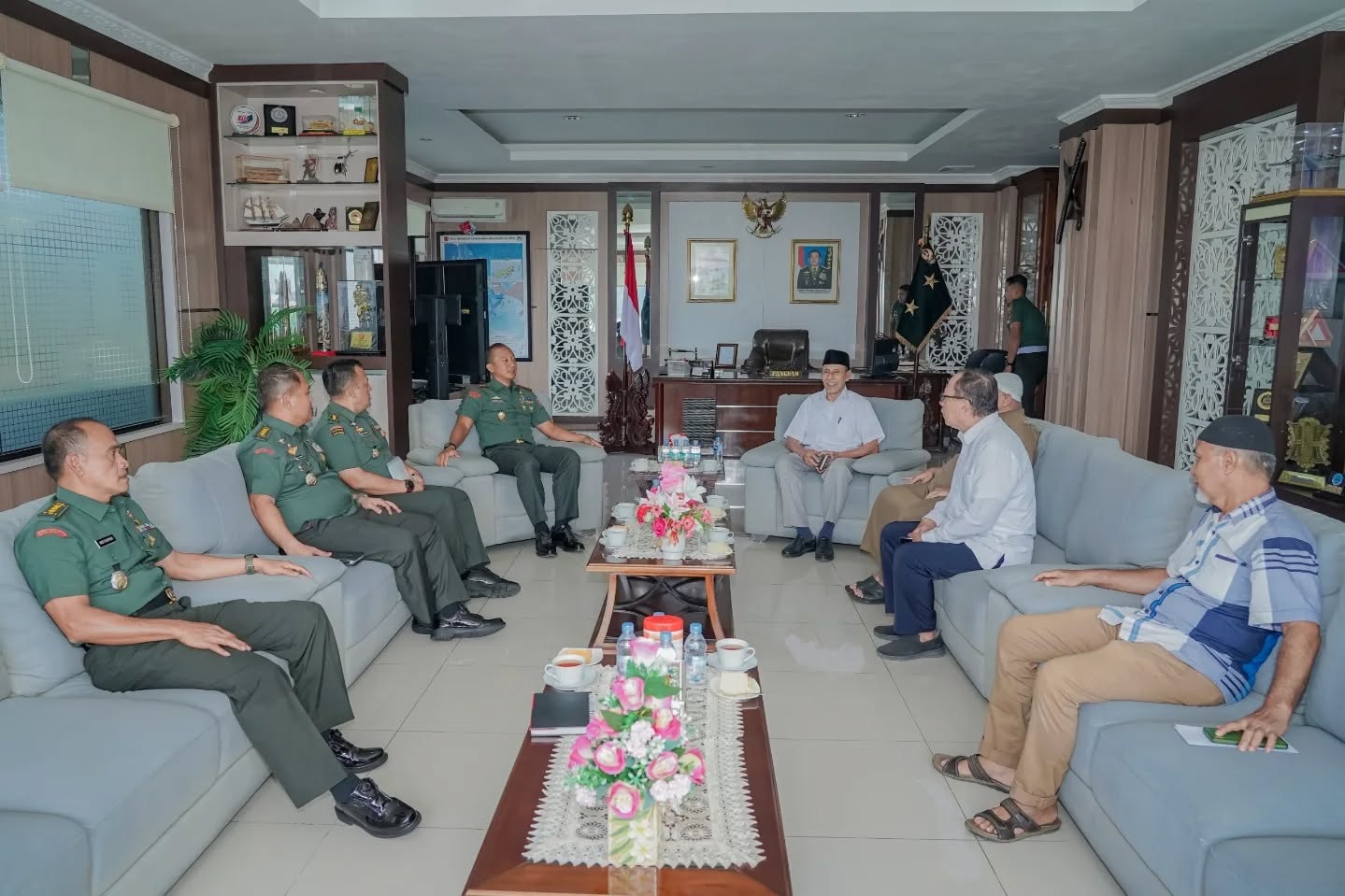 Menutup pertemuan, Pangdam menyampaikan apresiasi yang tinggi atas peran aktif pengurus Masjid Raya Al-Fatah.