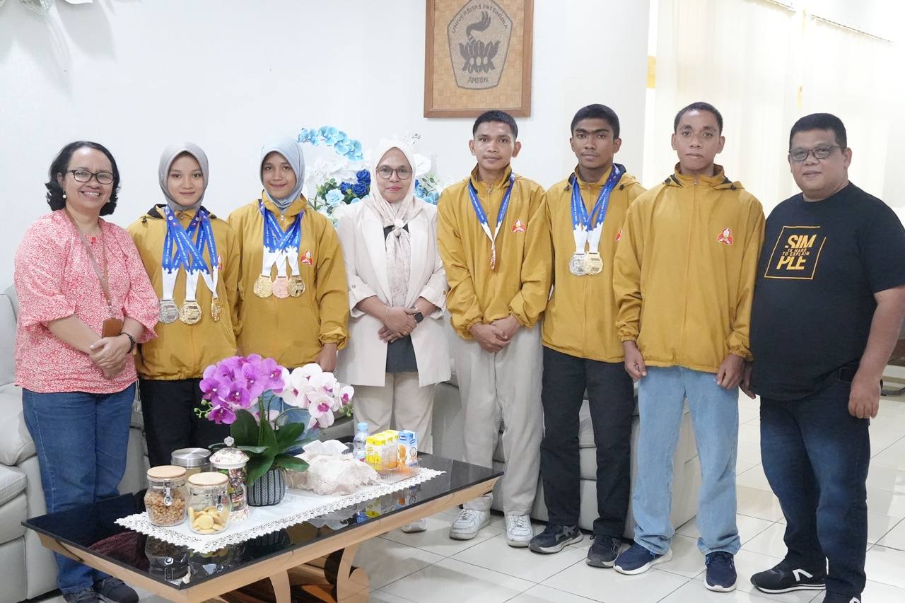Capaian tersebut secara resmi ditandai dengan prosesi penyerahan simbolis sembilan medali oleh kontingen kepada Wakil Rektor Bidang Kemahasiswaan, Hubungan Masyarakat, dan Alumni Universitas Pattimura, Dr. Nur Aida Kubangun, S.Pd., M.Pd., pada Jumat, (13/02/2026), bertempat di Ruang Kerja Wakil Rektor III Universitas Pattimura.